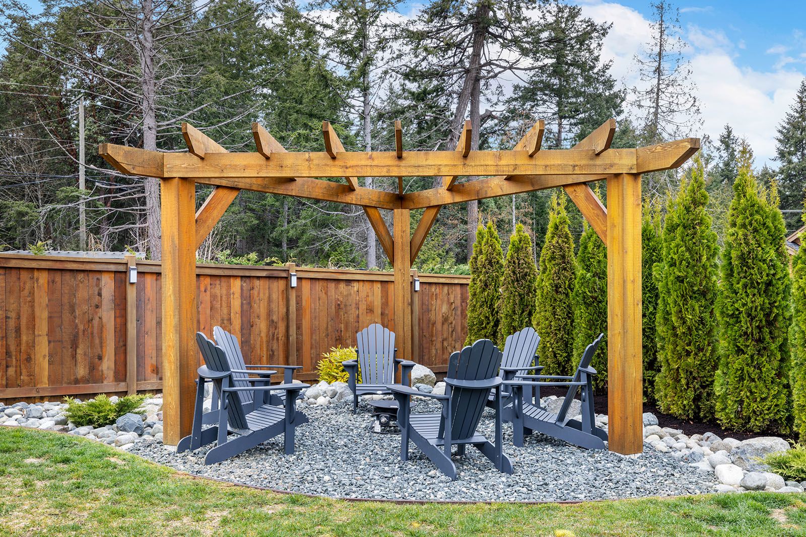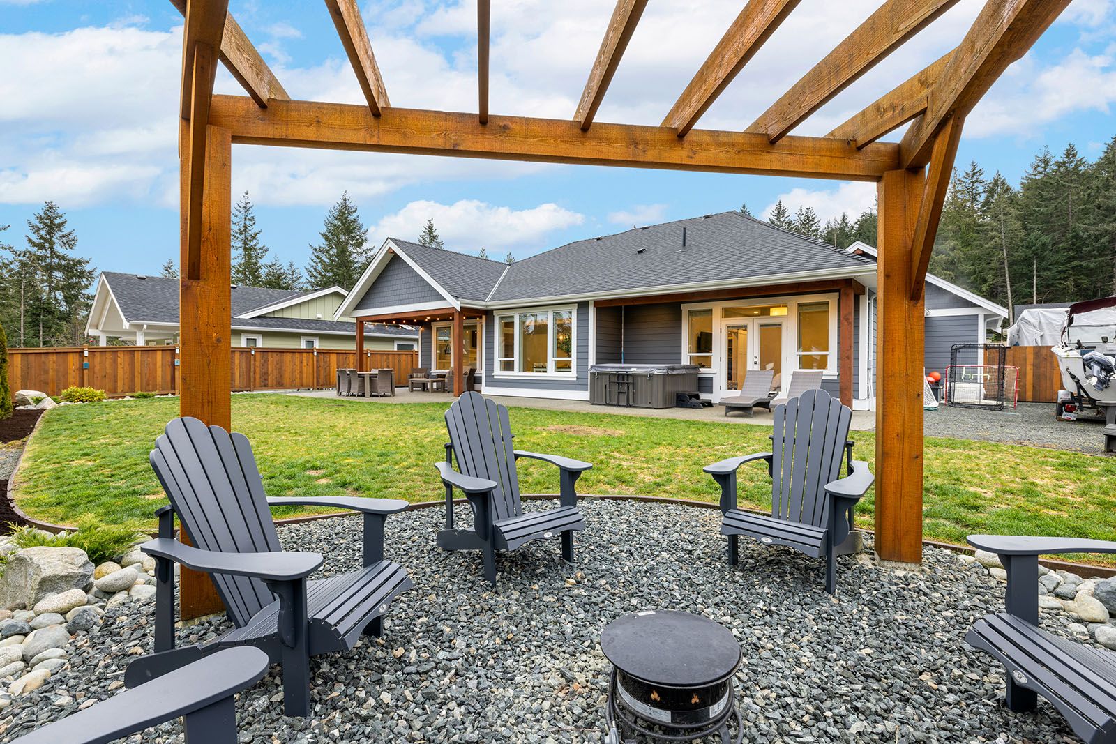 This 3-bedroom home with a dedicated office is located in Nanoose Bay, just a short walk from the scenic trails and waterfront of Moorecroft Park. Designed for outdoor enjoyment, the property features a fire pit and pergola, an outdoor structure with columns and a roofing grid of beams and rafters, perfect for gatherings and relaxation.